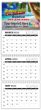 This is a 3 Month View Commercial Wall Calendar with 4 panel construction, 3 separate monthly grids. All panels attach to each other with metal twin-loop binding for easy tear-off. Top panel includes twin-loop binding with metal loop for hanging.