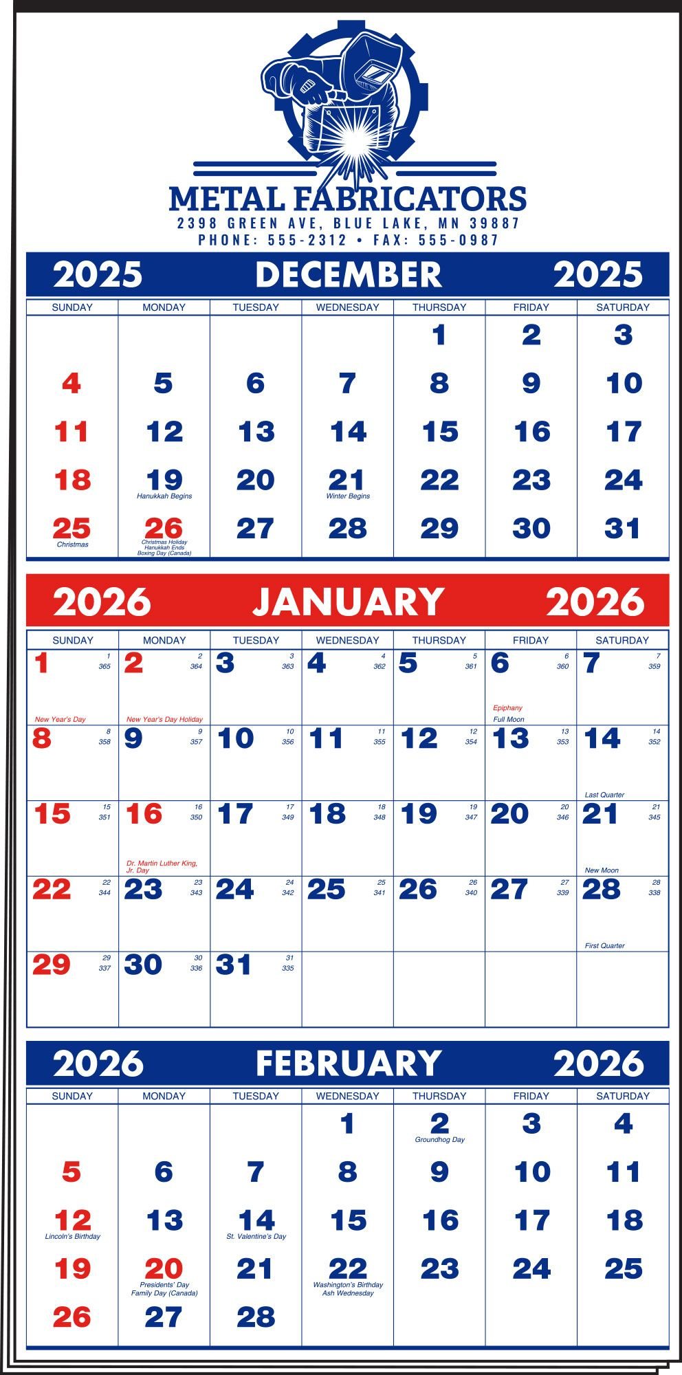 Contact us with your design needs so we can assist you finalize the details of your calendar.