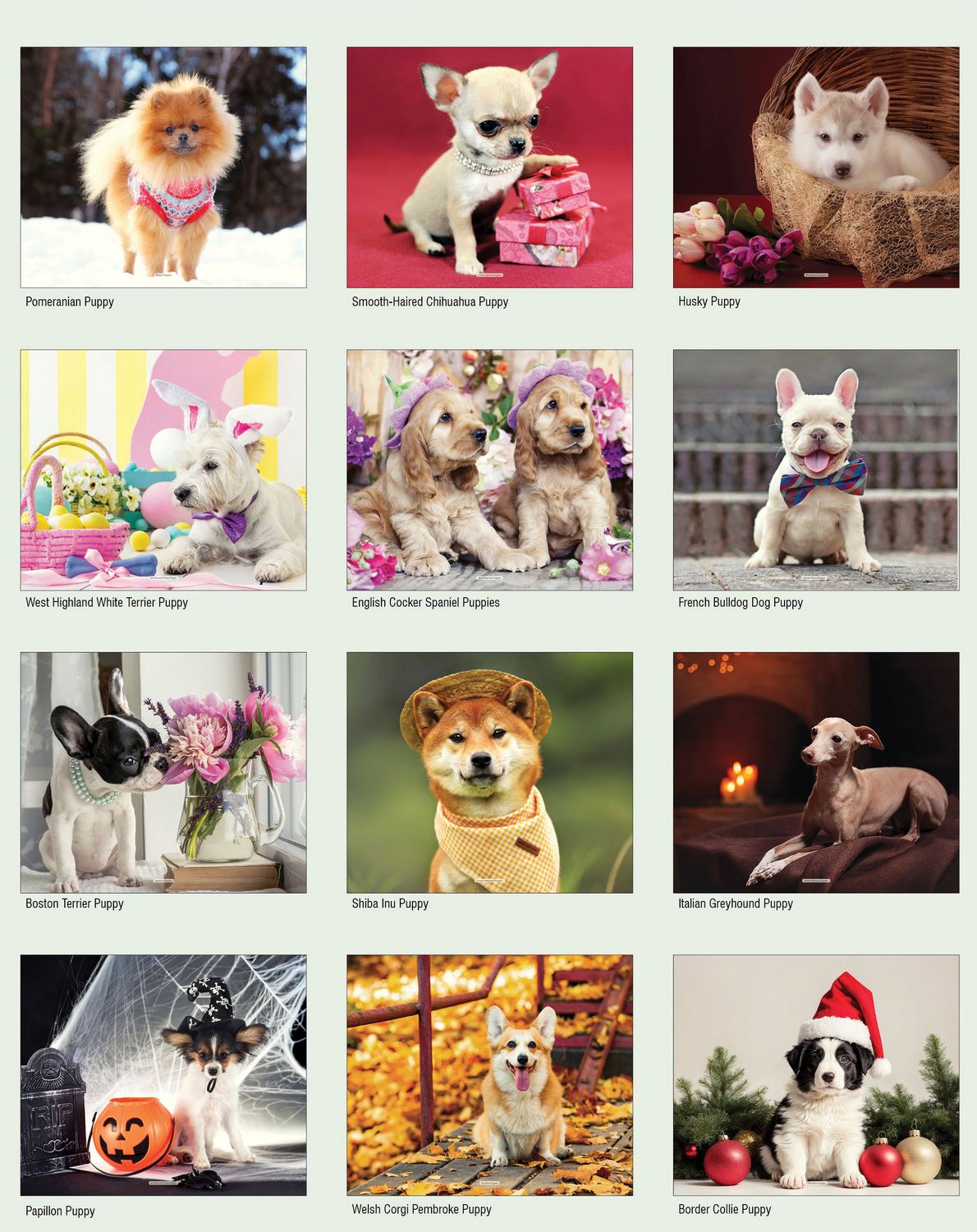 Best Friends Puppies - Animal Calendar 2027, Spiral, 12.5x21 Open and has spiral binding. Built with high quality paperstock, (Cover is 110 lb. Gloss Cover Stock with UV Coating; Pad is 75 lb. Gloss Cover Stock with UV coating), and customizable from a single color to Full-Color imprint for your advertising copy. Colorful refreshing images decorate this appointment wall calendar, a 12 month calendar of great quality. The attractive and different desing, will certainly attract attention and be admired all year long, promoting your advertising message. Custom printed with your business information and logo for a year long exposure will be a great and appreciated gift.