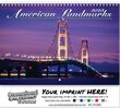 American Landmarks Wall Calendar - Spiral. 13 month wall calendar with double loop spiral binding features high quality photos of historic american landmarks. White House, Golden Gate Bridge, Statue of Liberty and much more. Contact us with your design needs so we can assist you finalize the details of your calendar.