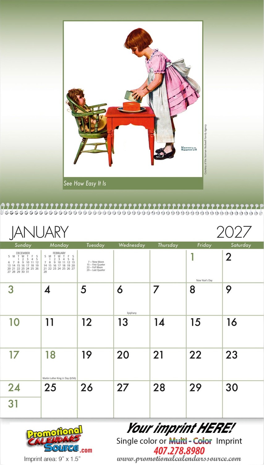 Illustrations Norman Rockwell Graphics Art Traditional Artistic American Made in USA Calendar Date Block spiral
