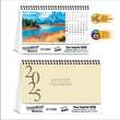 Item JC-712 is a Tent Desk Calendar decorated with SCENIC images of AMERICA landscapes. Stand Construction made of 15 pt. Gloss Cover stock, and pages made of 8 pt. Gloss Cover stock.