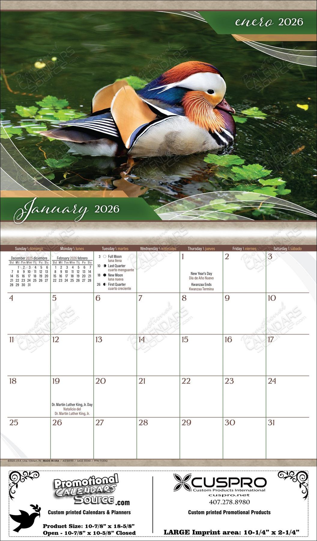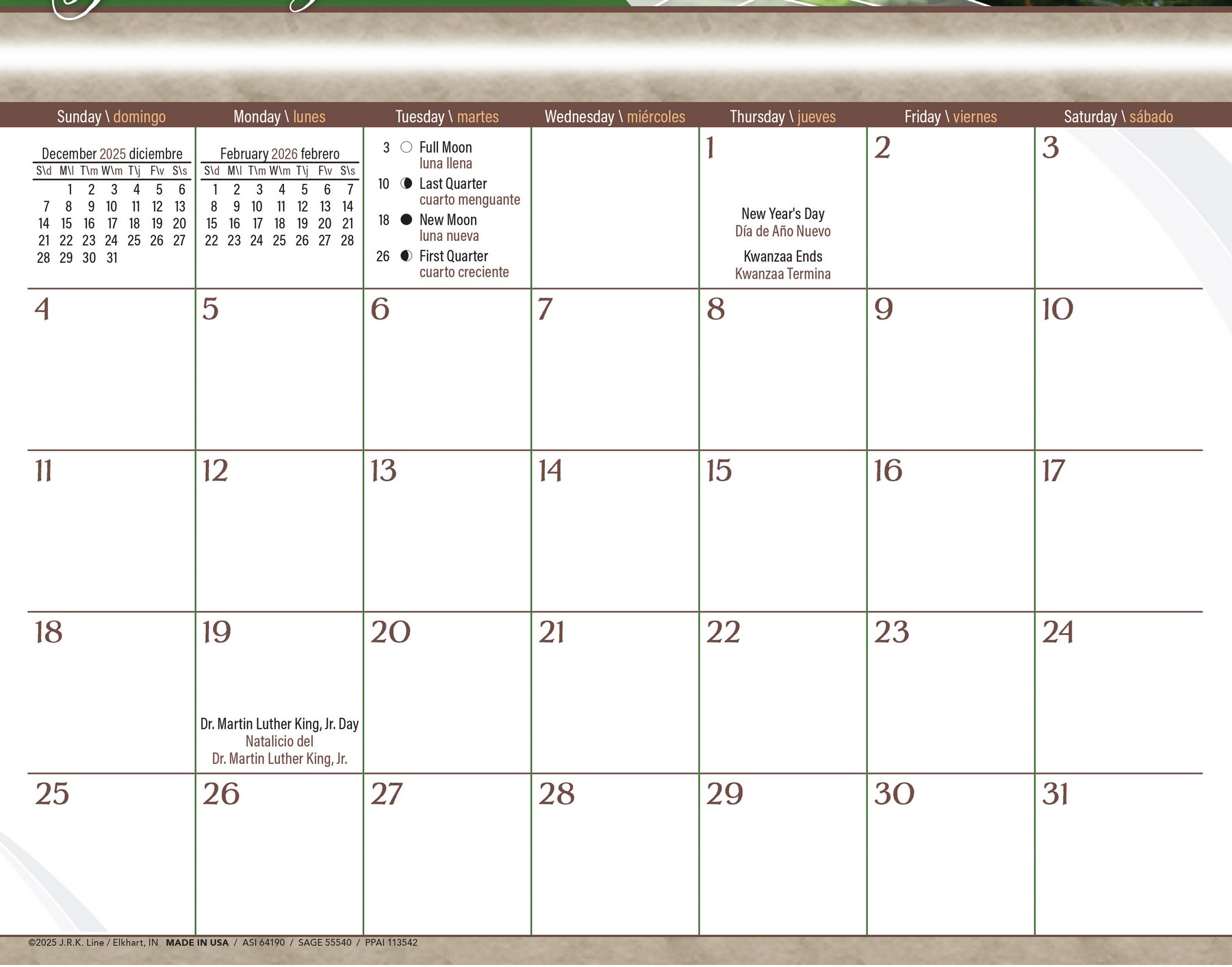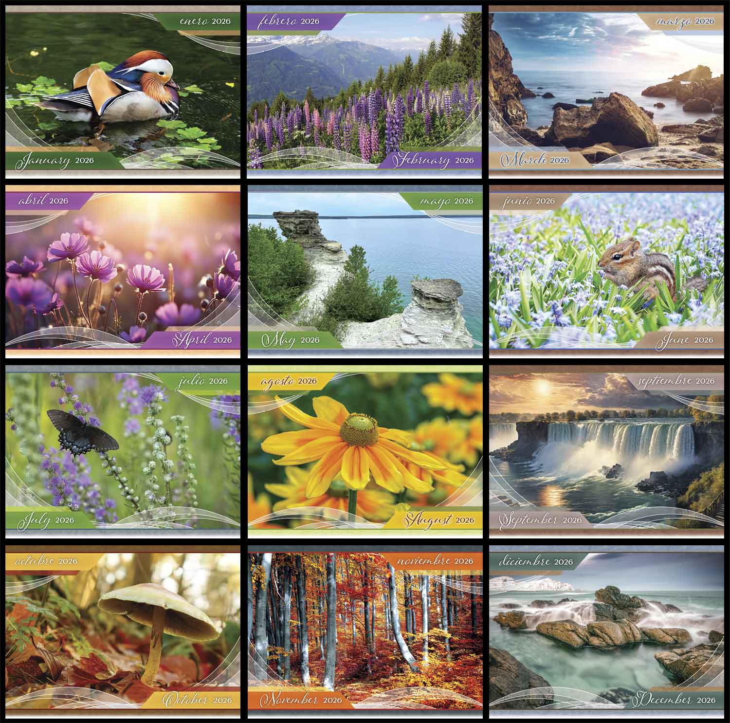 Beauty Around Us bilingual (Spanish-English) scenic Calendar with Funeral Preplanning insert option