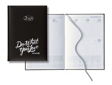 The Mid Size Weekly Planner includes 128 white pages with modern blue and gray print. Silver ribbon marker with printed year date. Perforated page corners. Extensive reference index in thru back. Size: 5 7/8 x 8 3/8 inches. Matra provides a quality high-grade polyurethane option, a cover that features a smooth surface with a matte finish. Contact us with your design needs so we can assist you finalize the details of your calendar.