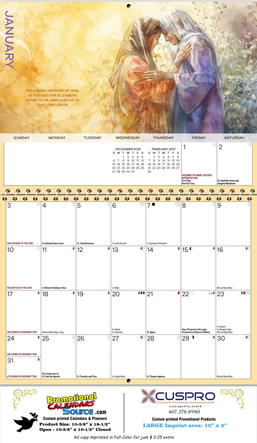 Catholic Evangelization Calendar 2027 With Funeral Preplanning insert option | Spiral