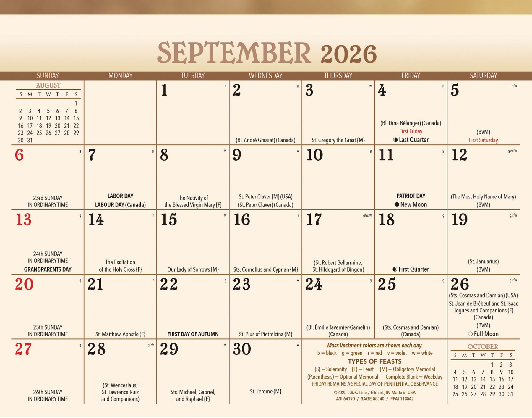 The Catholic Faith calendar features beautiful biblical artwork by the renowned artist William Luberoff. The calendar has a large pad for noting appointments. It also lists the Mass vestment colors for each day as well as all feast days and Holy Days of Obligation. Holy Days of Obbligation for 2027 with other Useful reference info and full 2027 calendar on back spread.