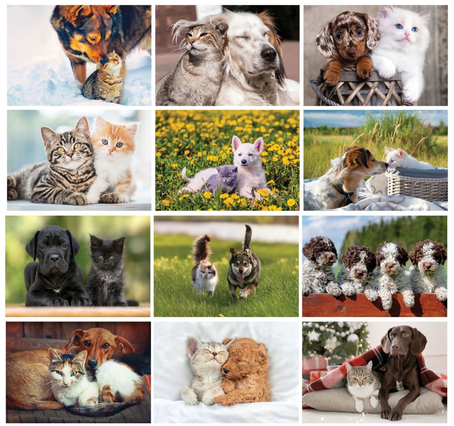 Cats & Dogs Promotional Desk Calendar . Stand-alone spiral desk calendar with monthly image on each side. 12 pages with high quality photos of Cats and Dogs.
