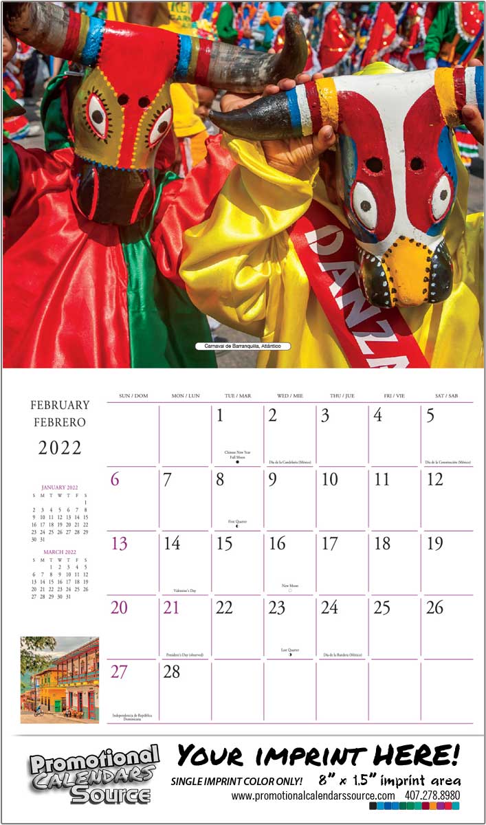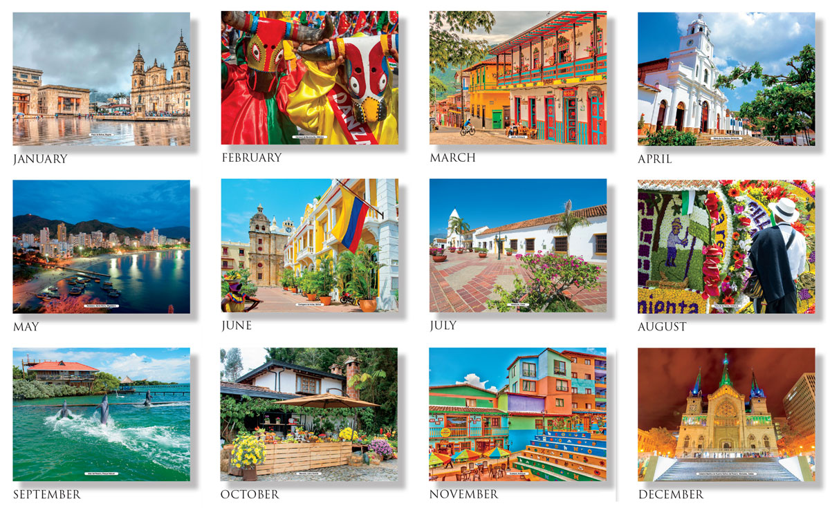 Colombia promotional calendar, colombia scenic calendar, latino america promo calendar colombia, bilingual calenmdar, Colombia tierra quierida calendar