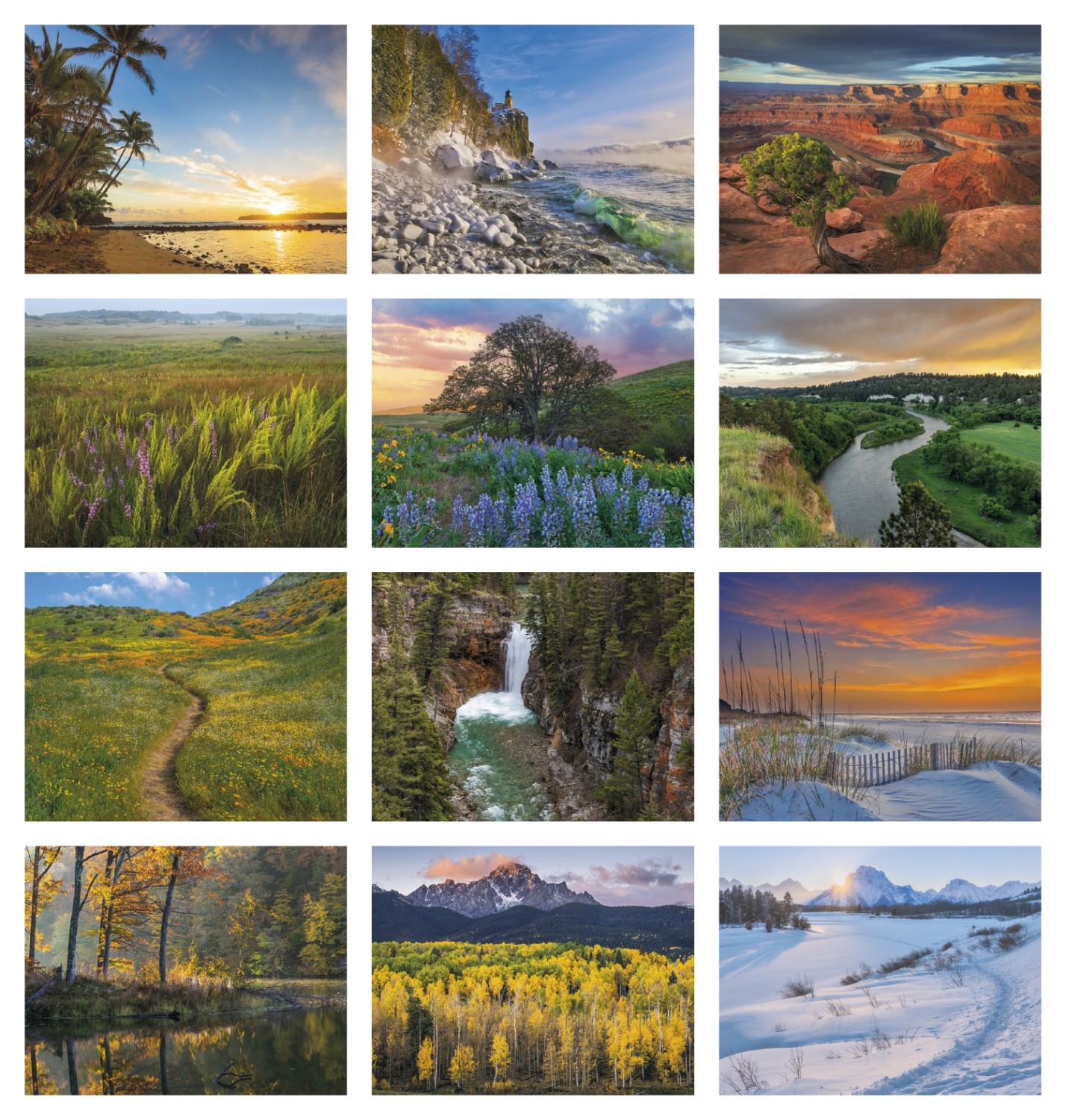 Contemplations Wall Calendar - Spiral. Thirteen serene images are sure to help soothe your senses while contemplating the inspirational quote accompanying each image. Spiral Bound calendar. Custom printed with your information will provide year long advertising.