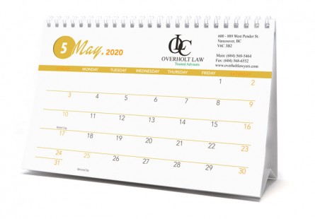 Custom Desk Tent Calendar size 8.5x5.5, Two Side Imprint, Spiral