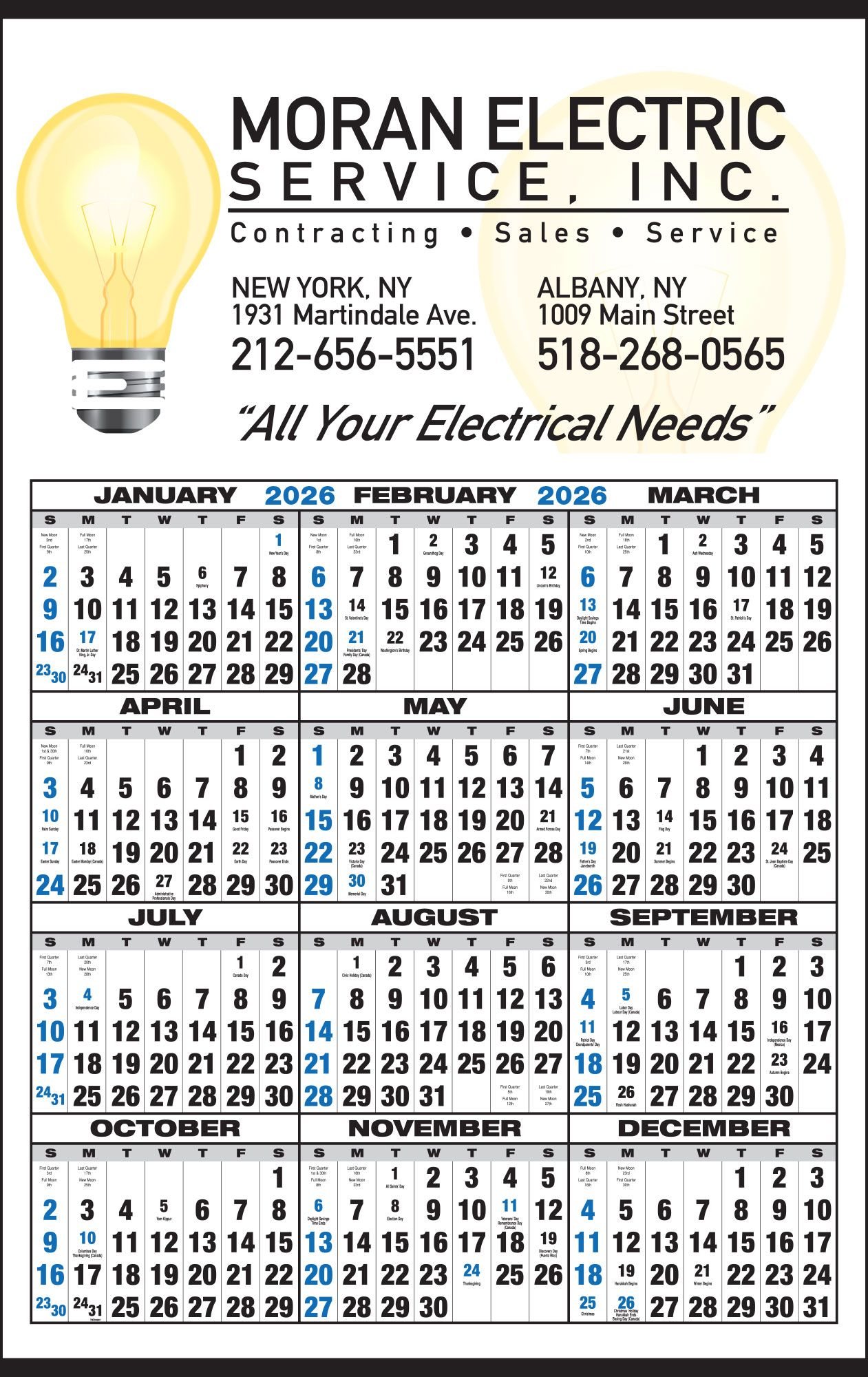 Contact us with your design needs so we can assist you finalize the details of your calendar.