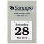 Daily Date Calendar Foil Stamped 65. The same as our Bookbound Daily Dates, except these are foil stamped with your logo. Available in grey, desert haze, natural white, green, blue, dark red, or black. Calendar pad begins in mid-December for early distribution and assured wall space. Metal hardware allows the calendar to be refilled. Smooth finished paper, mounted on recycled bookboard, a perfect accent to stamping. Hardbound book cover-like construction with wrapped edges for a rich and distinctive finish. Back punched with silver metal eyelet for easy hanging and increased durability. Stock foil colors: gold, silver or black.