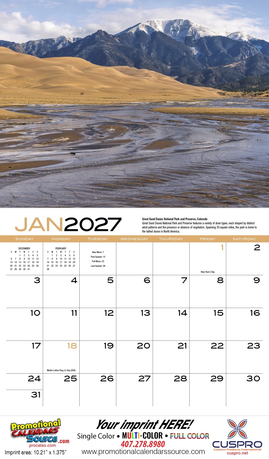 Earth Promotional Calendar Stapled. The remarkable beauty of nature that surrounds and inspires is highlighted in thirteen stunning photos from around the globe. Travel the world and gain new insight into the forces of nature shaping our environment. Custom printed with your information will provide year long advertising.