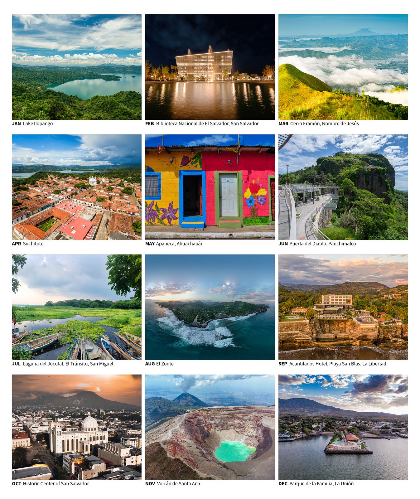 El Salvador Promotional Calendar Calendario. Travel to El Salvador form the comfort of you home. promotional calendar. A perfect gift for your customers, custom printed with your business information and logo for a year long exposure.