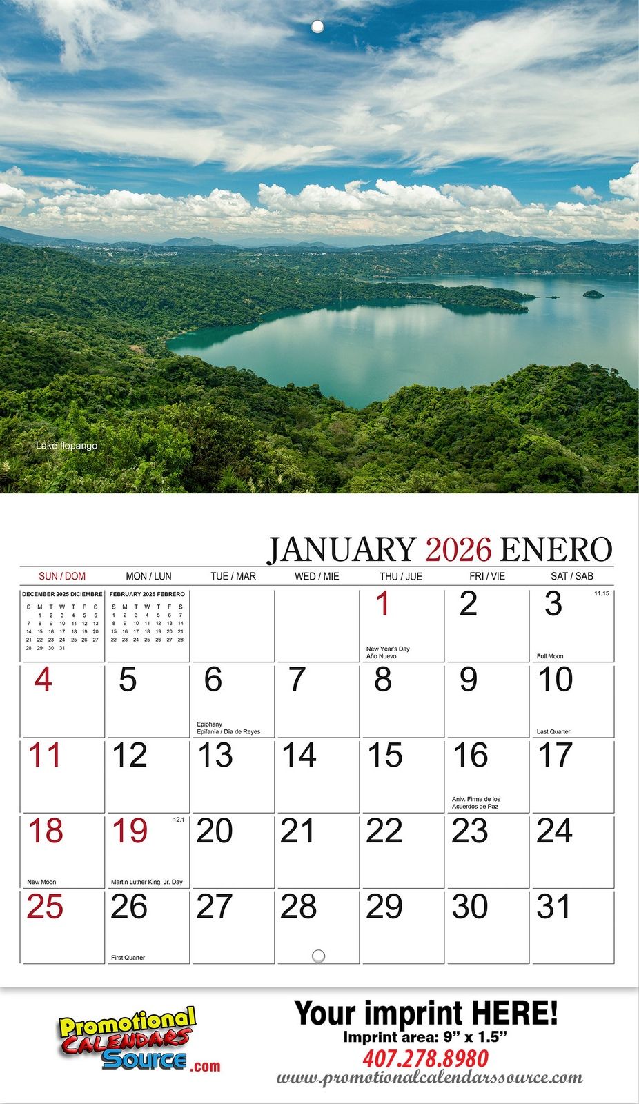 Calendars, Wall, Appointment, Drop Ad, 13-month, Scenic, Latin, Bilingual, Spanish, El Salvadorian Holiday, El Salvador