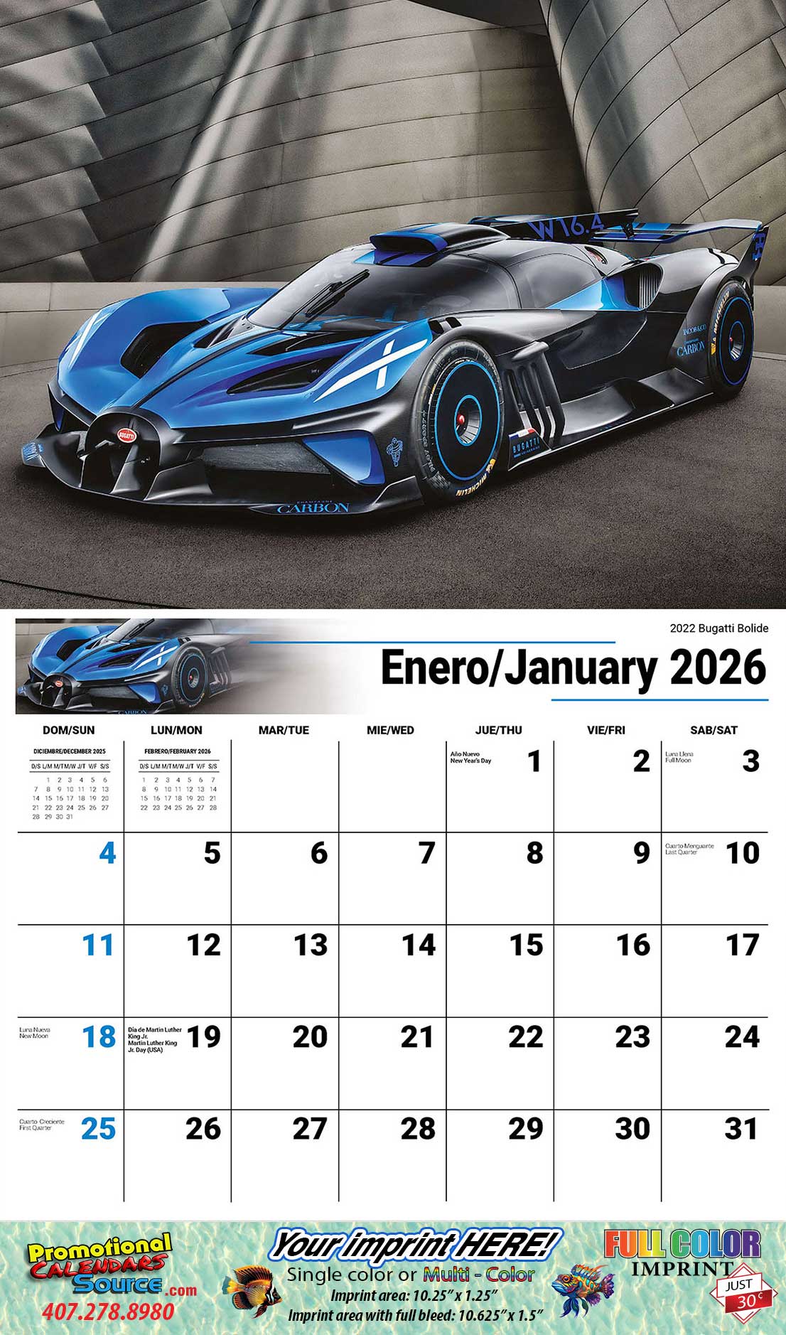 • Full-Bleed imprint option available for only $ 0.30 per calendar.