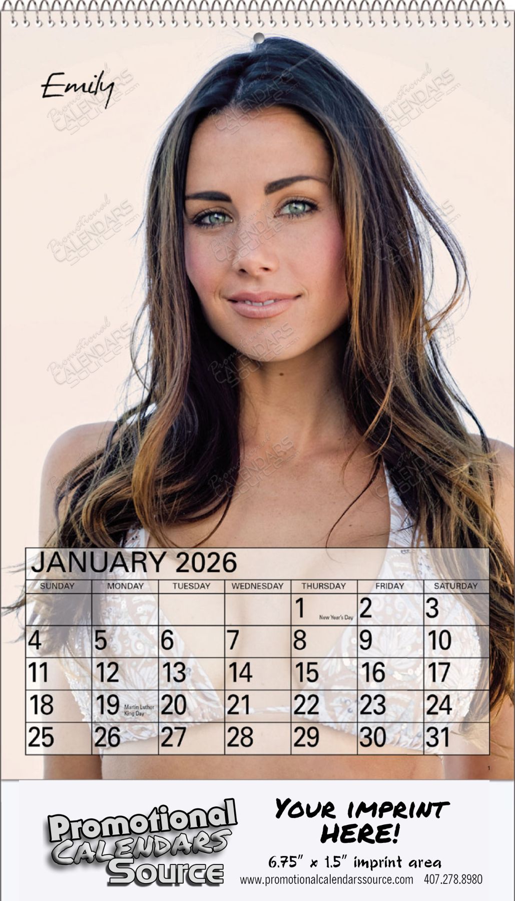 Hot Female Models 2023 Calendar, a 12 month calendar with twelve stunning female models who have nothing to hide. Calendar will appeal to male and female oriented businesses. Calendar size is 8x14 inches with ad area of 6.75x1.5 in. to be customized with your business information. A promotional calendar certainly attracting attention.