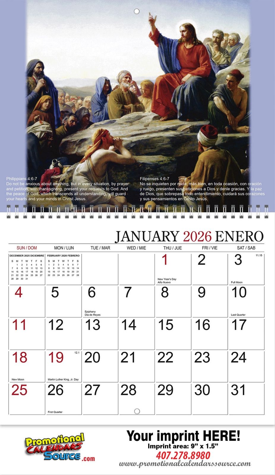 Calendars, Wall, Appointment, Drop Ad, 13-month, Religious, Christian, Bible Verse, Jesus, Latin, Bilingual, Spanish, Mexican Holiday