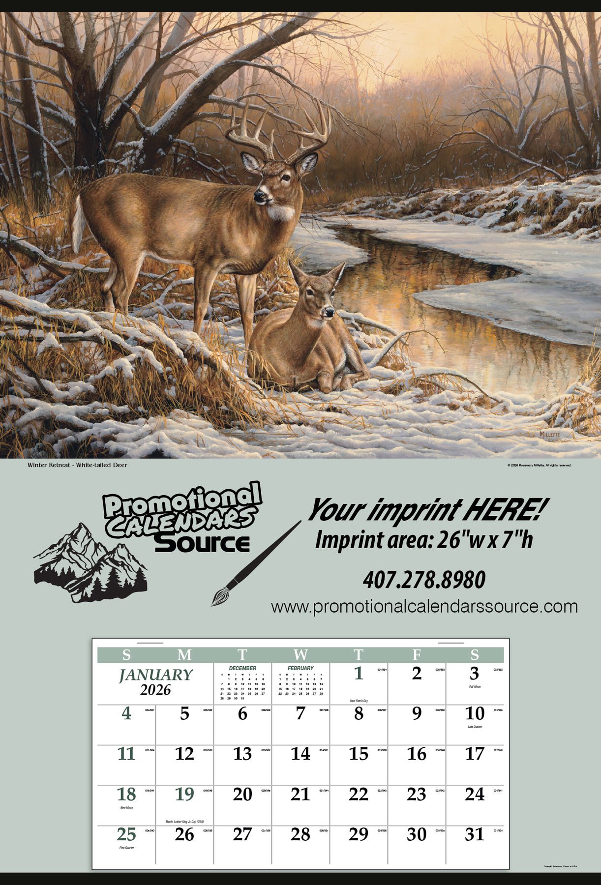 Jumbo Hanger Promotional Calendar - White Tail Deer 27x39 | 2027