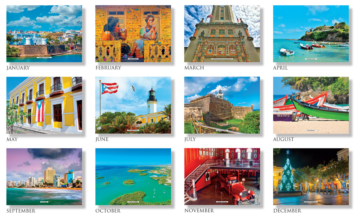 promotional calendar of puerto rico, la isla de puerto rico calendario promocional, sceni san juan promo calendar,