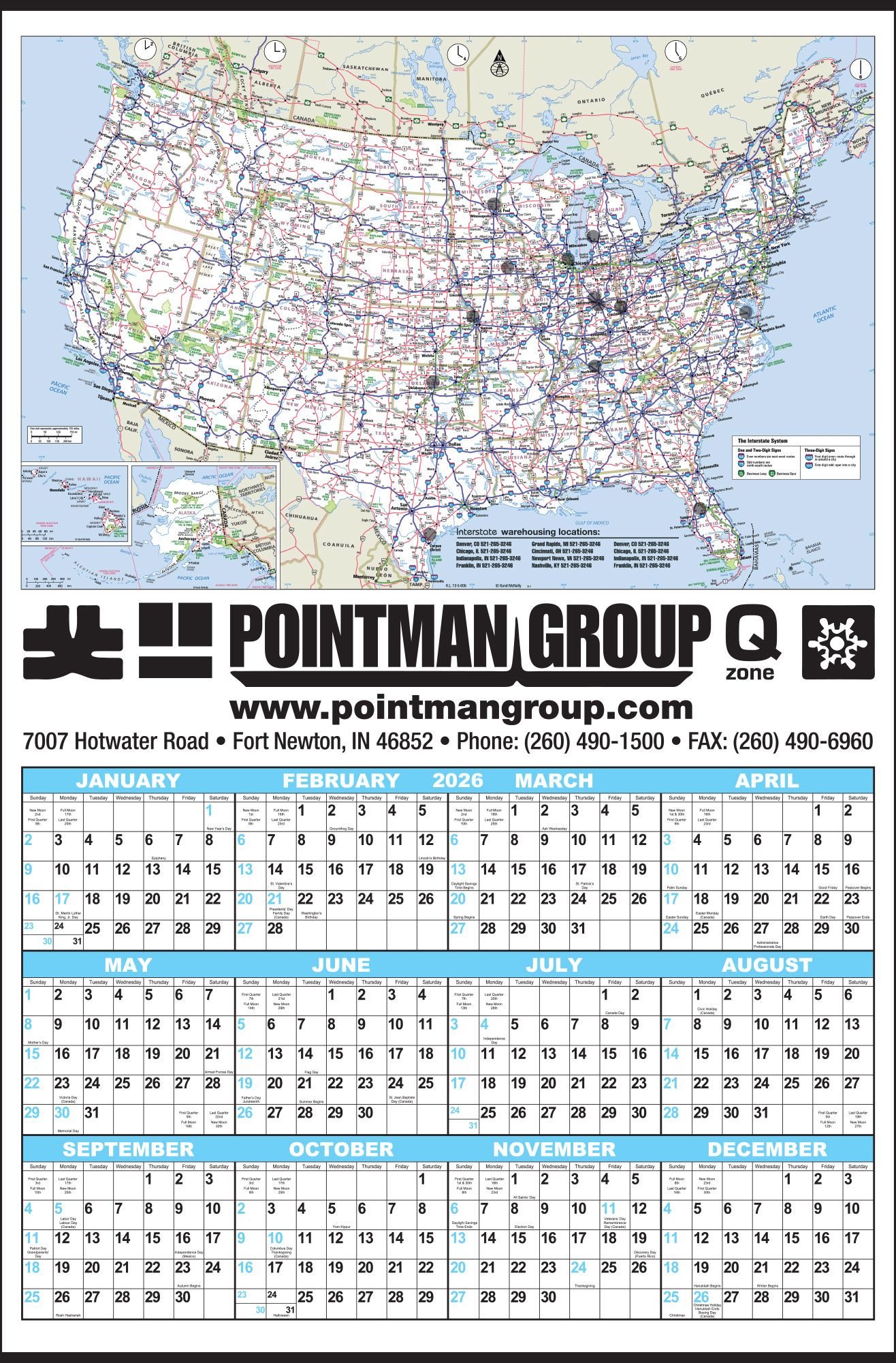 Year In View Calendar with Rand McNally USA Map, Large Year-In-View Wall Calendar with Interstate Highway Map, Custom Printed Highway Map Year at Glance Calendar