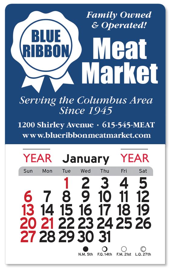 Large rectangle shaped header Stick-Up calendar, Large Square header adhesive calendar, Custom printed Square header Peel-N-Stick calendar, Promo stick up calendar with square top
