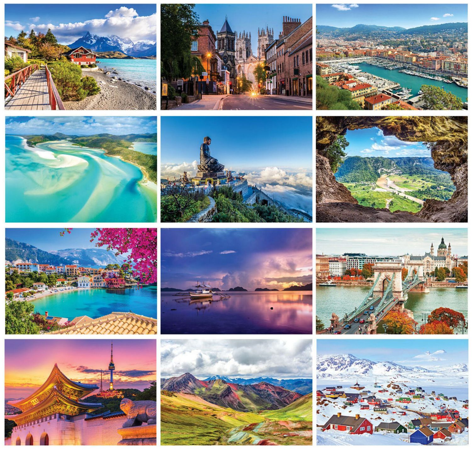 Your customers can enjoy places from around the world while looking at the colorful images of this promo calendar. Your advertising message enjoyed all year long. Stitched Wall Calendar with Your ad copy custom printed on the back flap.
