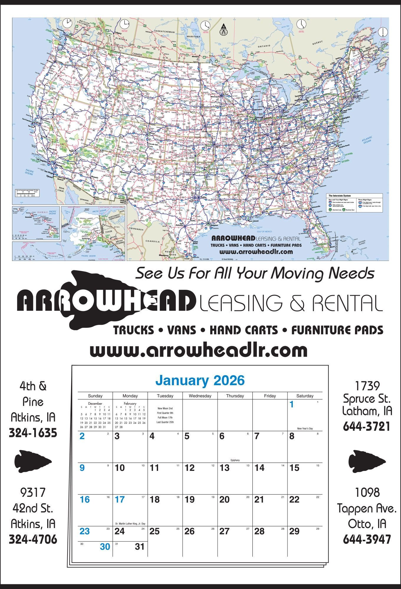 Full Apron Rand McNally Map Calendar, Tinned top and bottom Apron Calendar, Full PAron Wal Calendar with 12 Month calendar pad, Full color reproduction of Rand McNally State Highways
