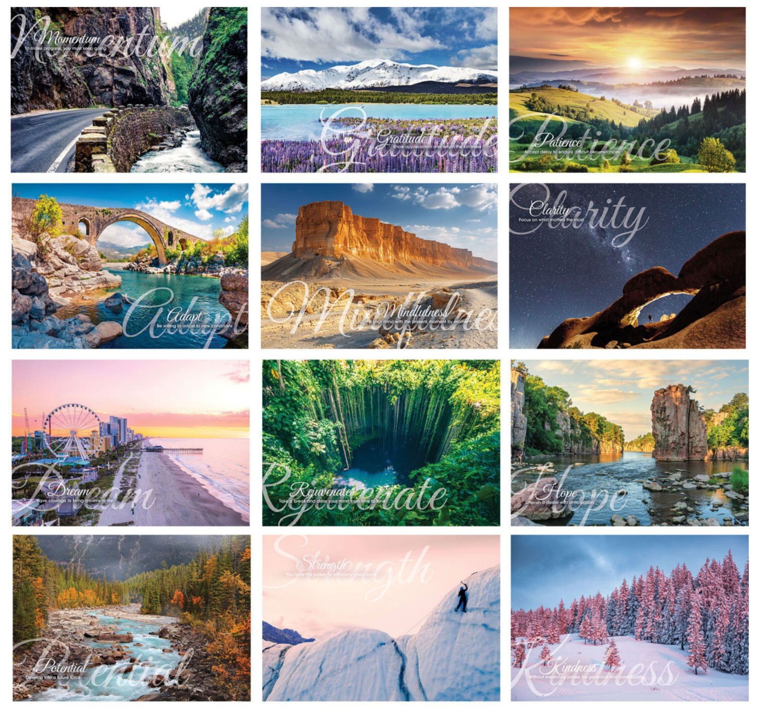 Motivations Wall Calendar - Spiral. This 13 month wall calendar with double loop spiral binding features high quality photos and Motivation verses.