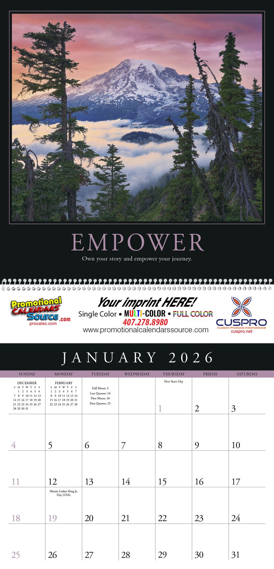 Motivations Promotional Calendar , UV Coated Calendar, Size 12x25