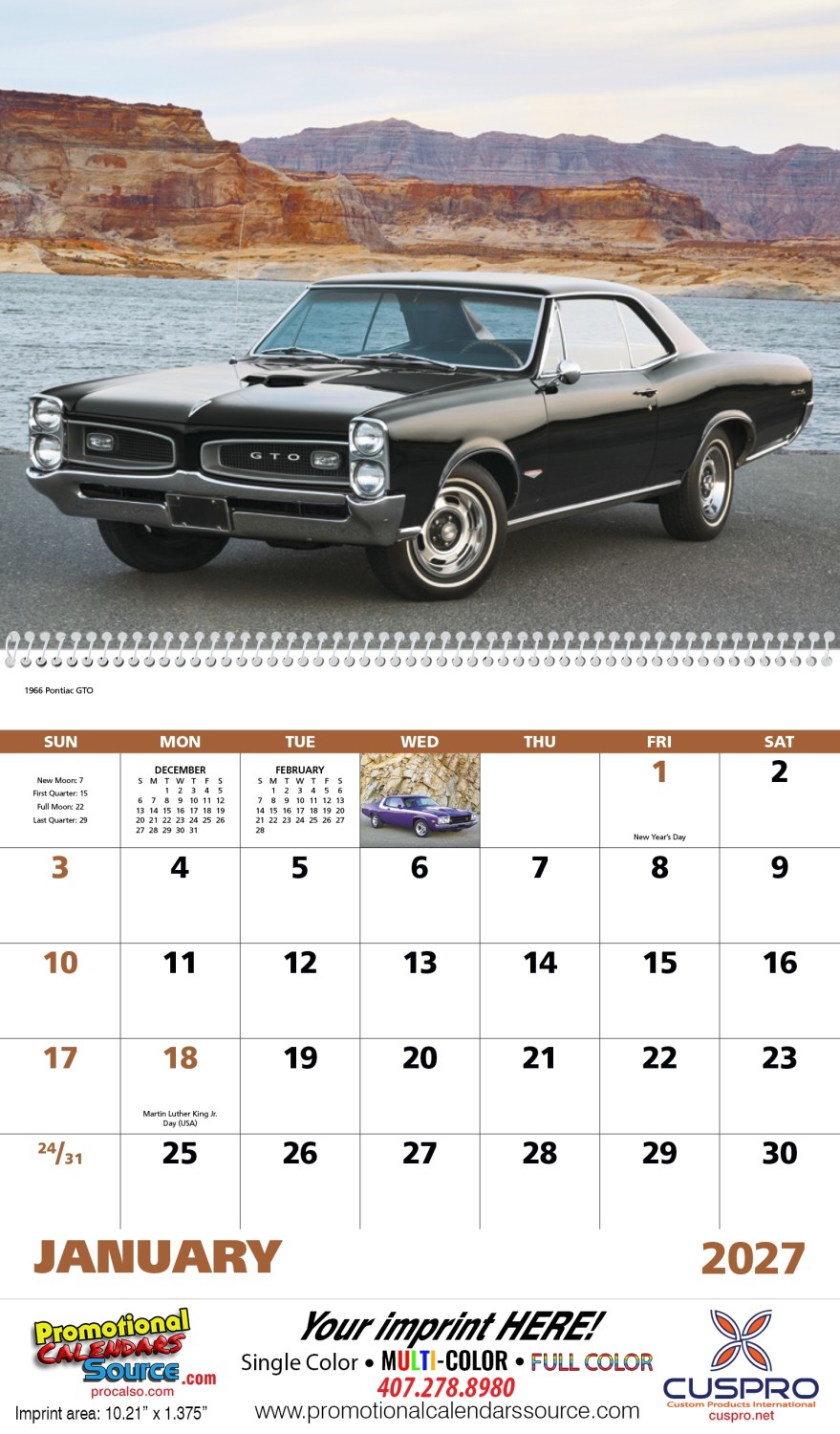 Take advantage of this excellent advertising opportunity. Get in touch with us today to customize your calendar design and ensure your ad is printed exactly how you envision it. Muscle Thunder Cars: your brand, in full throttle!