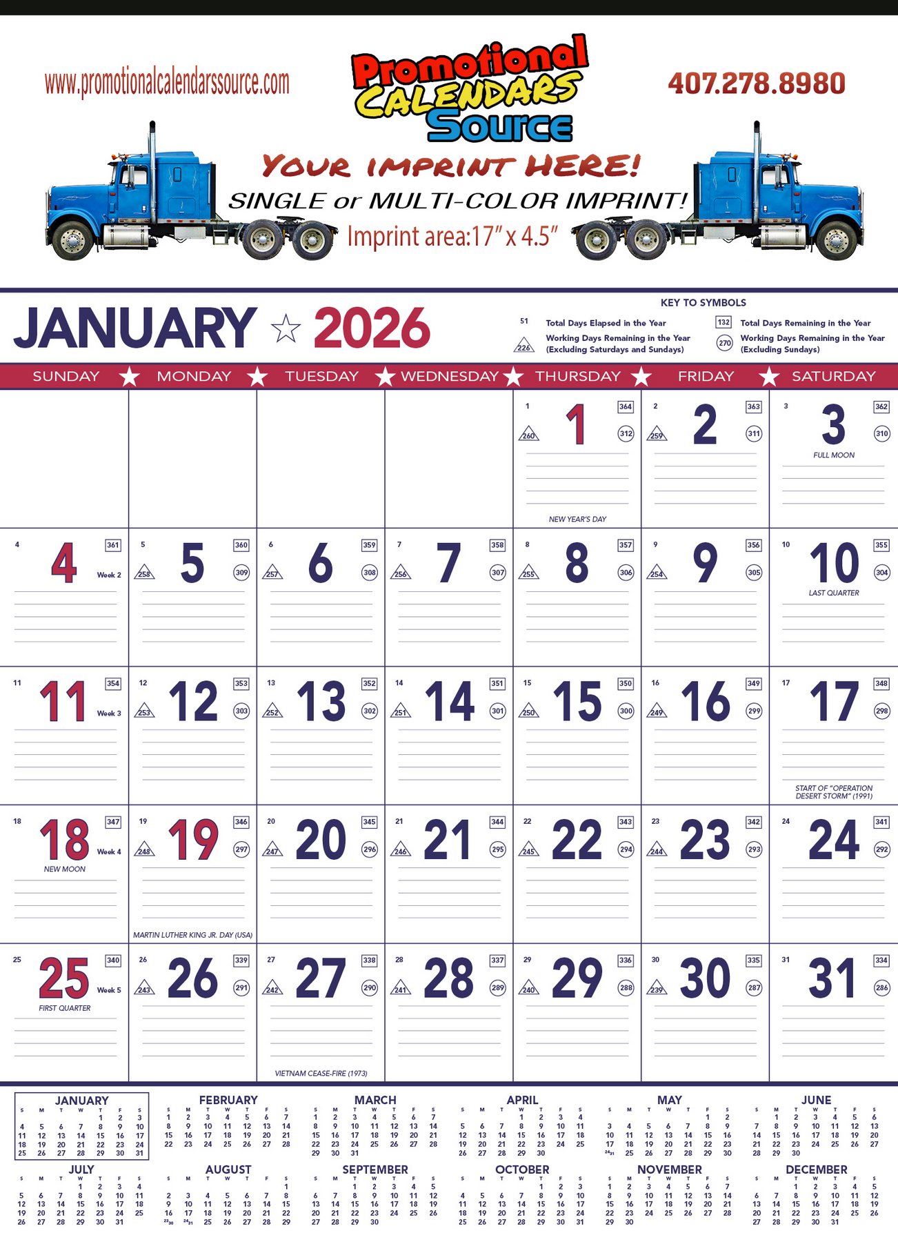Contractor Calendar, Promotional Contractor Calendar, Custom Printed Contractor Calendar, Red & Blue US Flag colors imprint, Contractor Commercial Calendar, Julian Dates, Week Numbers, Patriotic theme, 2022 contractor calendar