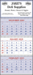 3 Month View Red & Blue Commercial Planner Calendar, size 13" x 29" open. Is a 14 month calendar that runs from December of previous year through January of following year.
