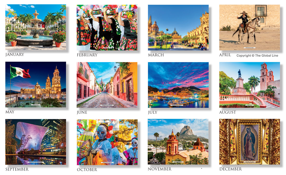 mexico scenic calendar, views of mexico promo calendar, mexican culture promotional calendar, mexico lifestyle calendar, scenes of mexico promotional calendar,