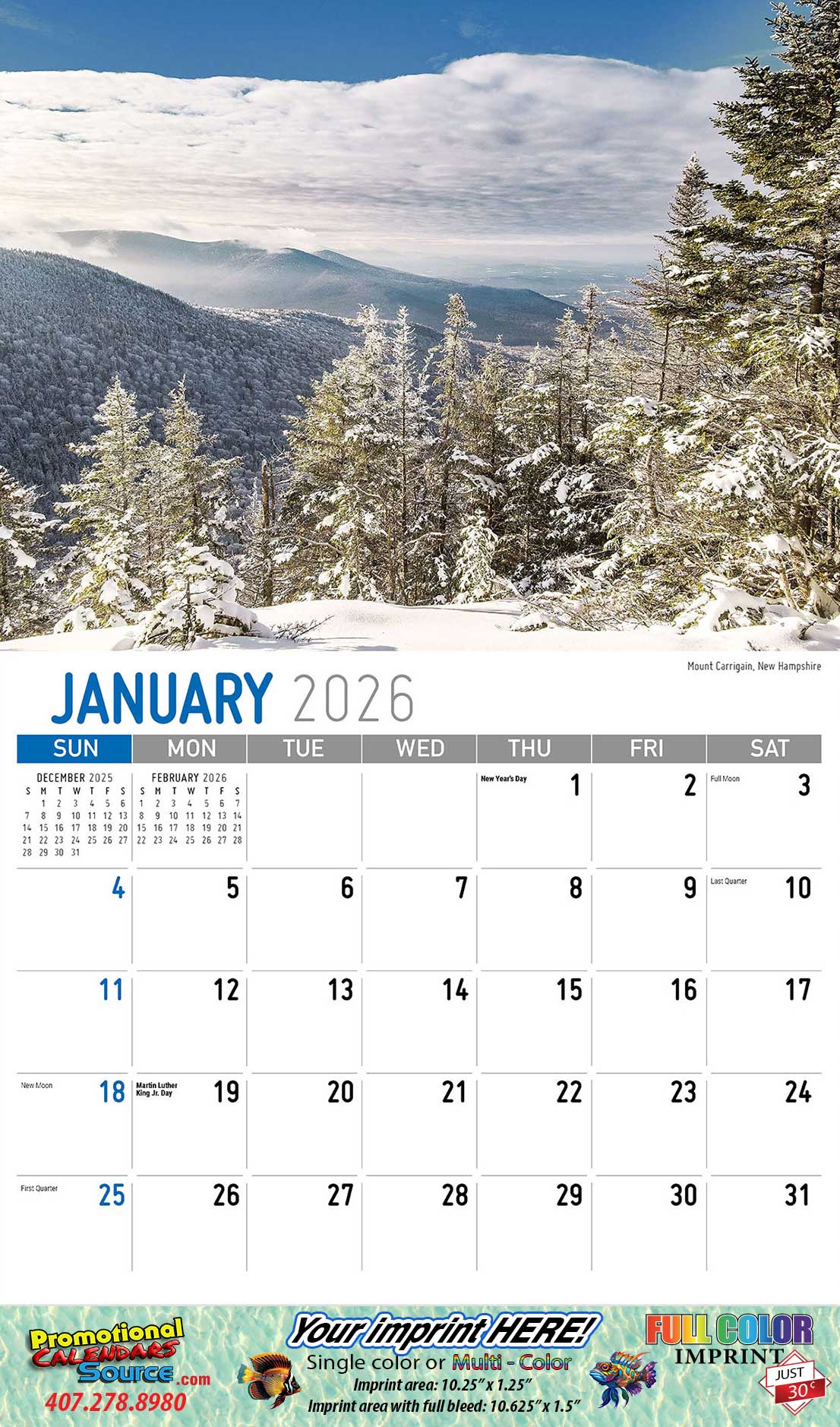 • Full-Bleed imprint option available for only $ 0.30 per calendar.