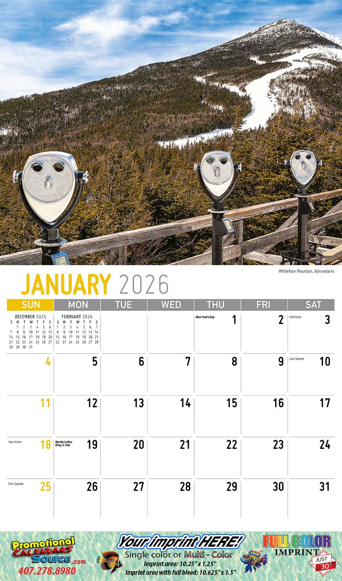 • Full-Bleed imprint option available for only $ 0.30 per calendar.