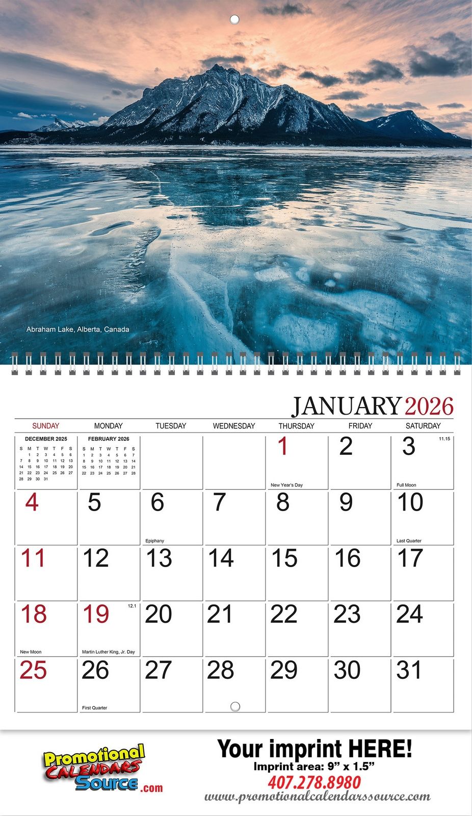 • Full-Color ad imprint available for just $ 0.25 additional per each calendar.
