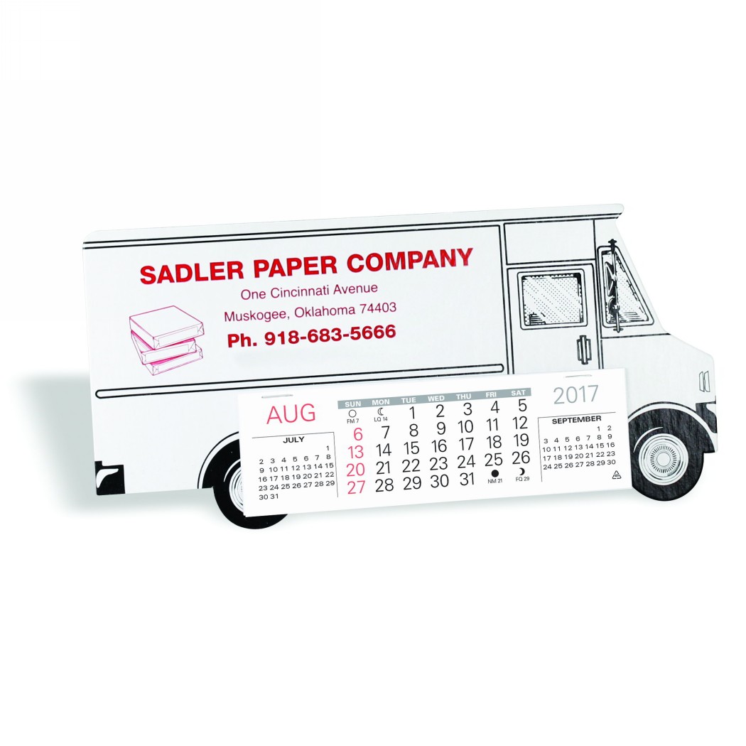 box van calendar, three month pad, van shaped desk calendar, automotive desk calendar, easel style desk calendar, FREE set-up,