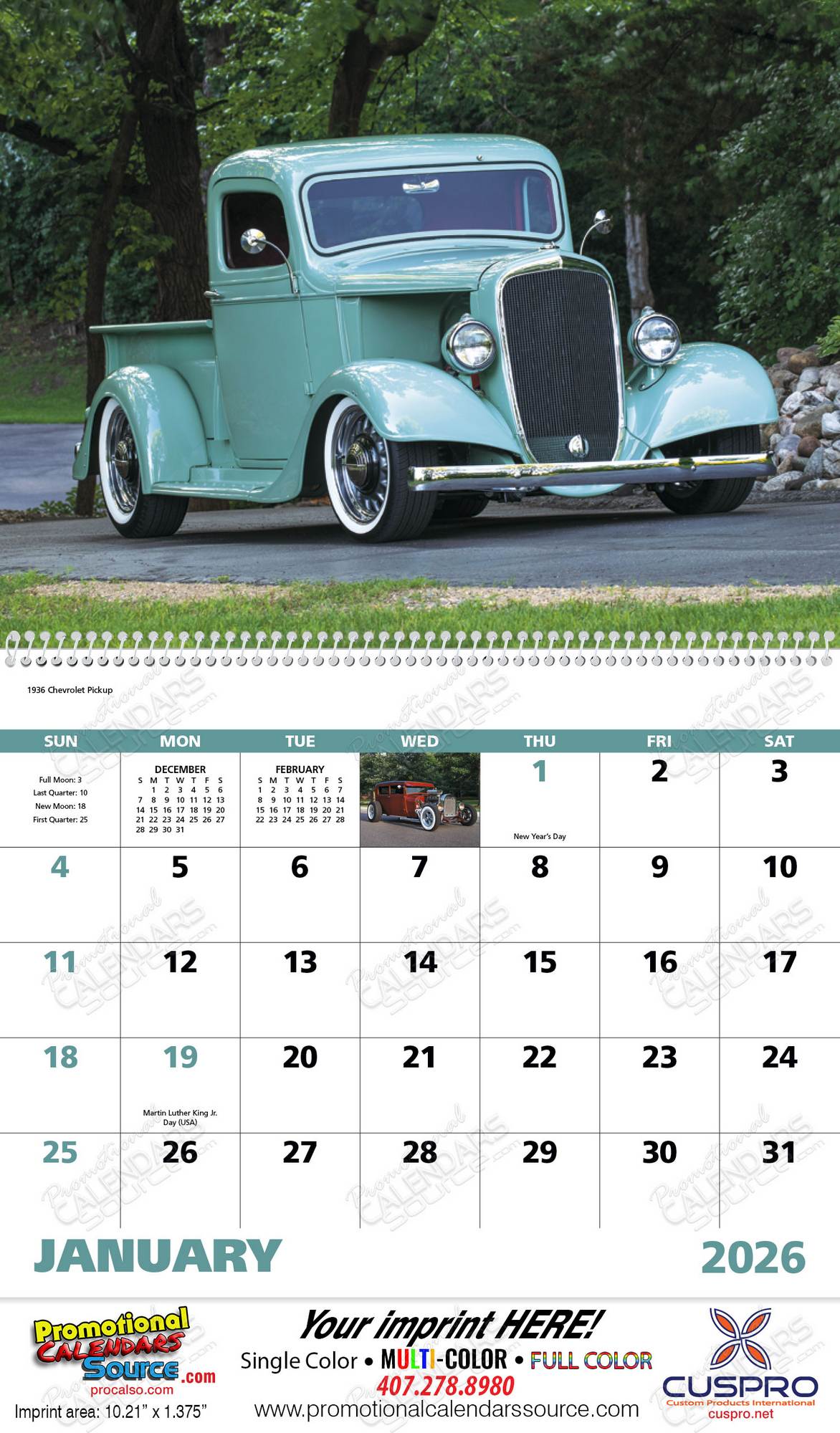 Street Rods English Spiral Value Calendars Vehicle Cars Automobile Classic Car Calendars vehicle Advertising Dealer Auto Automotive Made In USA Vehicles Fast Cars Powerfull