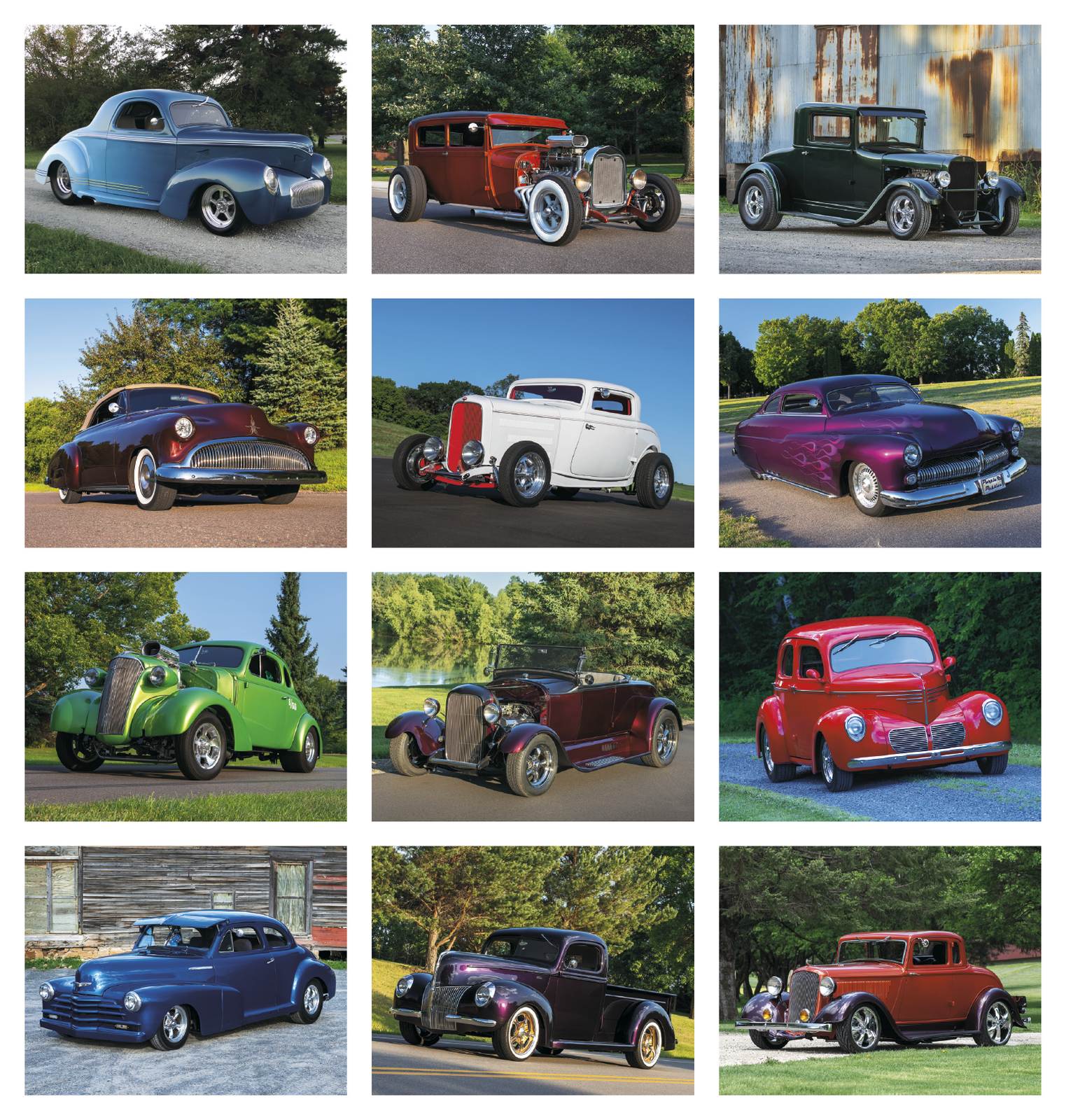 Street Rods Promotional Calendar Stapled, These rods will steal attention all year with roaring success. Drop ad customizable area, size 11x19 in open size.