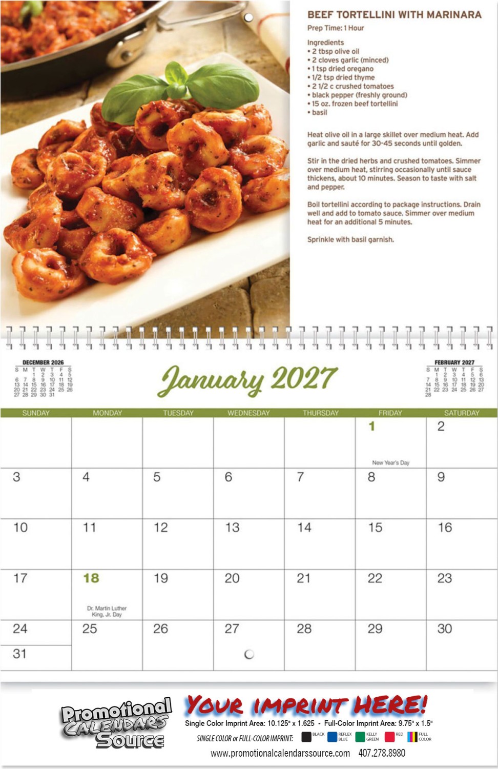 Taste of the Month Wall Calendar Spiral. Taste of the Month Wall Calendar Spiral. 13 month wall calendar with double loop spiral binding has high quality photos of "Taste of the Month" and features recipe of the month complete with step by step instructions. Contact us with your design needs so we can assist you finalize the details of your calendar.