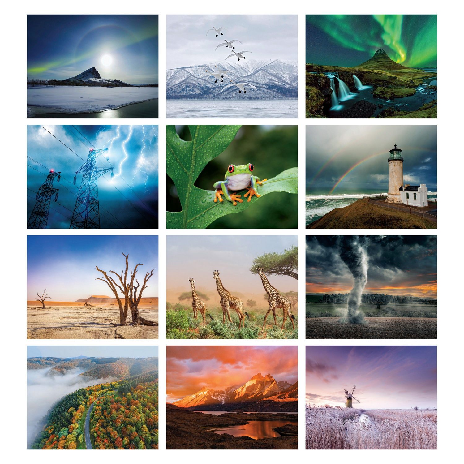 Stapled calendar, Made in USA, Landscapes Calendar, Outdoors, Nature promotional calendar, Natural Events customized calendar, Rain Winter Fog Nordern Lights Ice Windy Tranquillity,Custom printed Immagination calendar