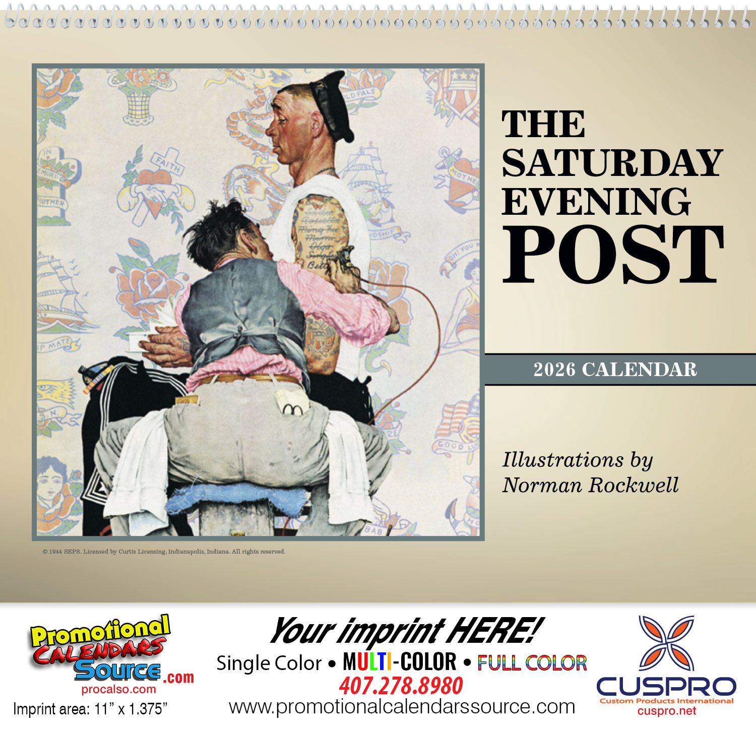 Our Deluxe Pocket reverse-collated calendar featuring The Saturday Evening Post Illustrations by Norman Rockwell profile segments of Americana throughout the year. Contact us with your design needs so we can assist you finalize the details of your calendar.
