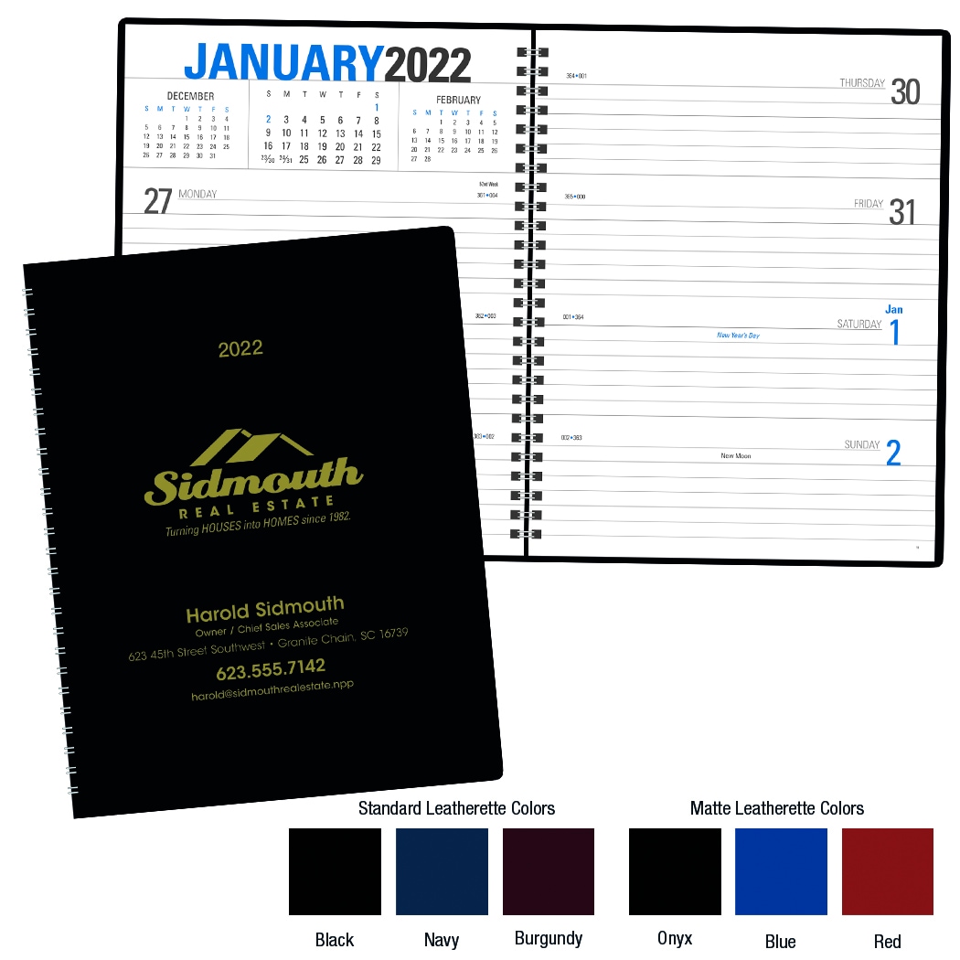 2026 Promotional Custom Printed Calendar - YEAR is included as standard copy on front cover - New glitter ink option available on Matte Leatherette covers