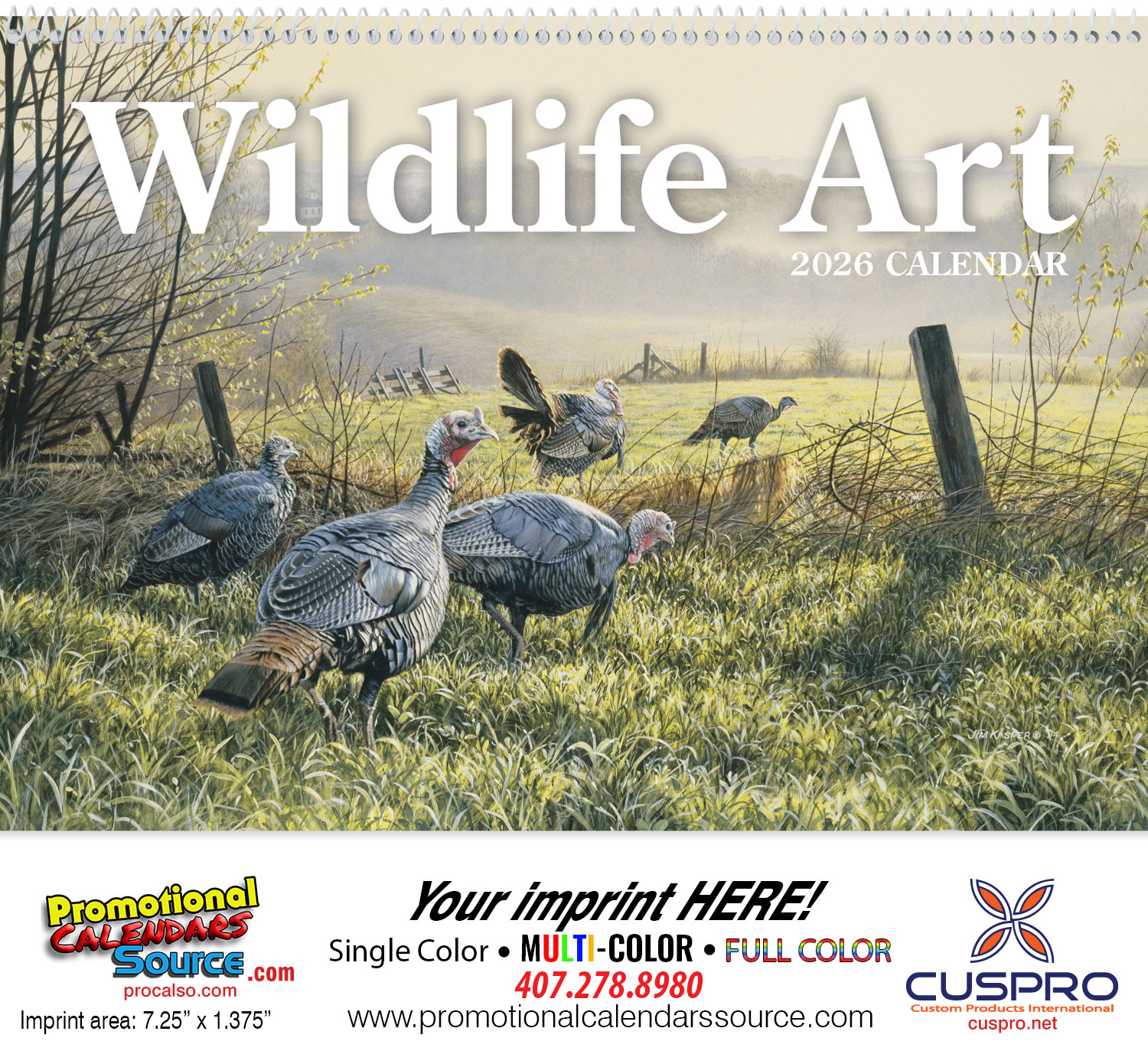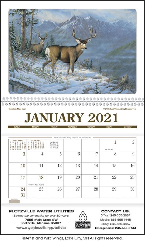 Wildlife Art Pocket Calendar Custom Printed, Size 8x13
