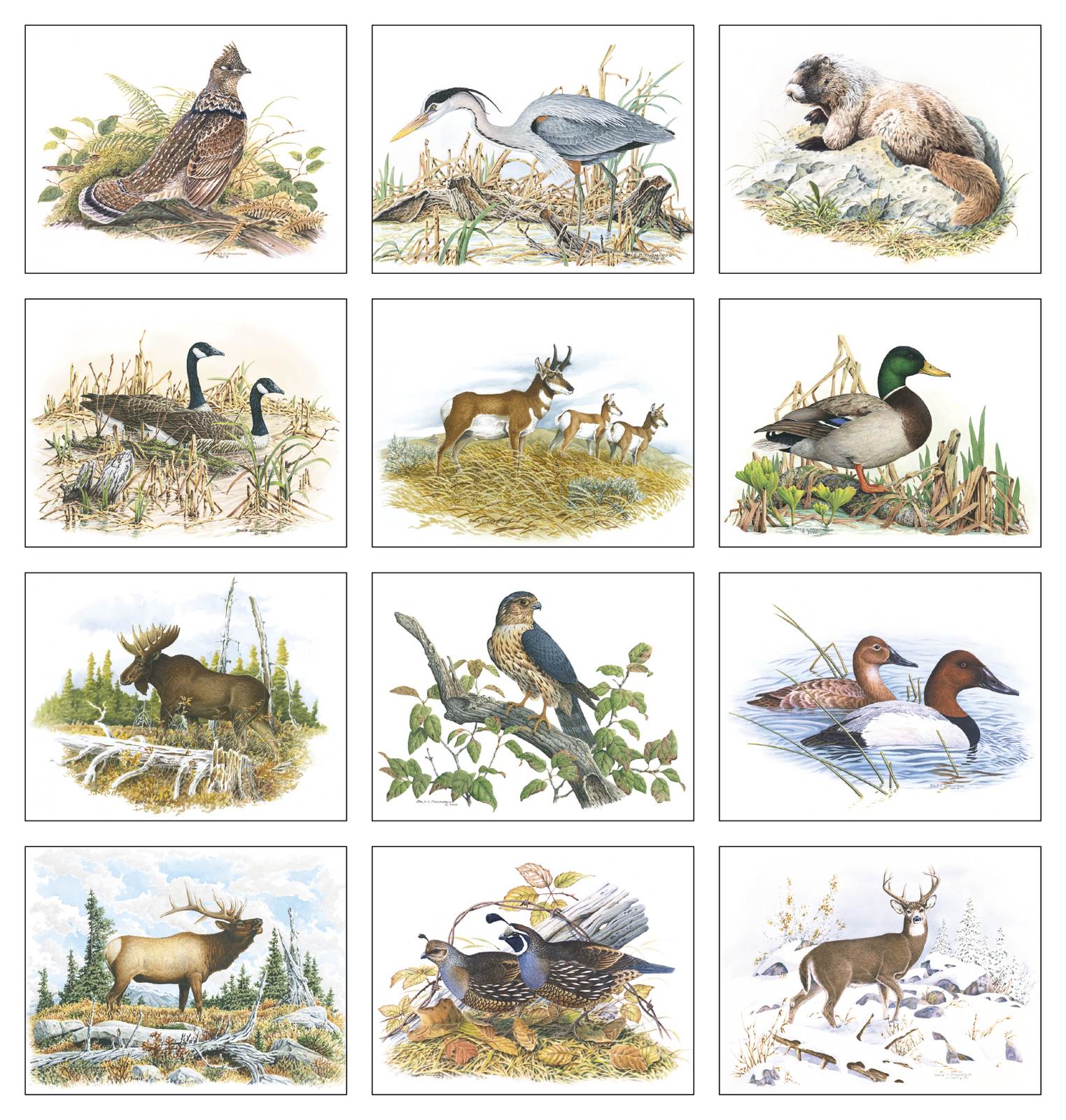 Wildlife Trek Promotional Calendar with saddle stitched binding. Detailed wildlife paintings bring the outdoors inside with this 13 mont calendar. Great works of art portraying wildlife. 11x19 in. of exposure to make your business stand out and appreciatted all year round. A wild Life calendar.