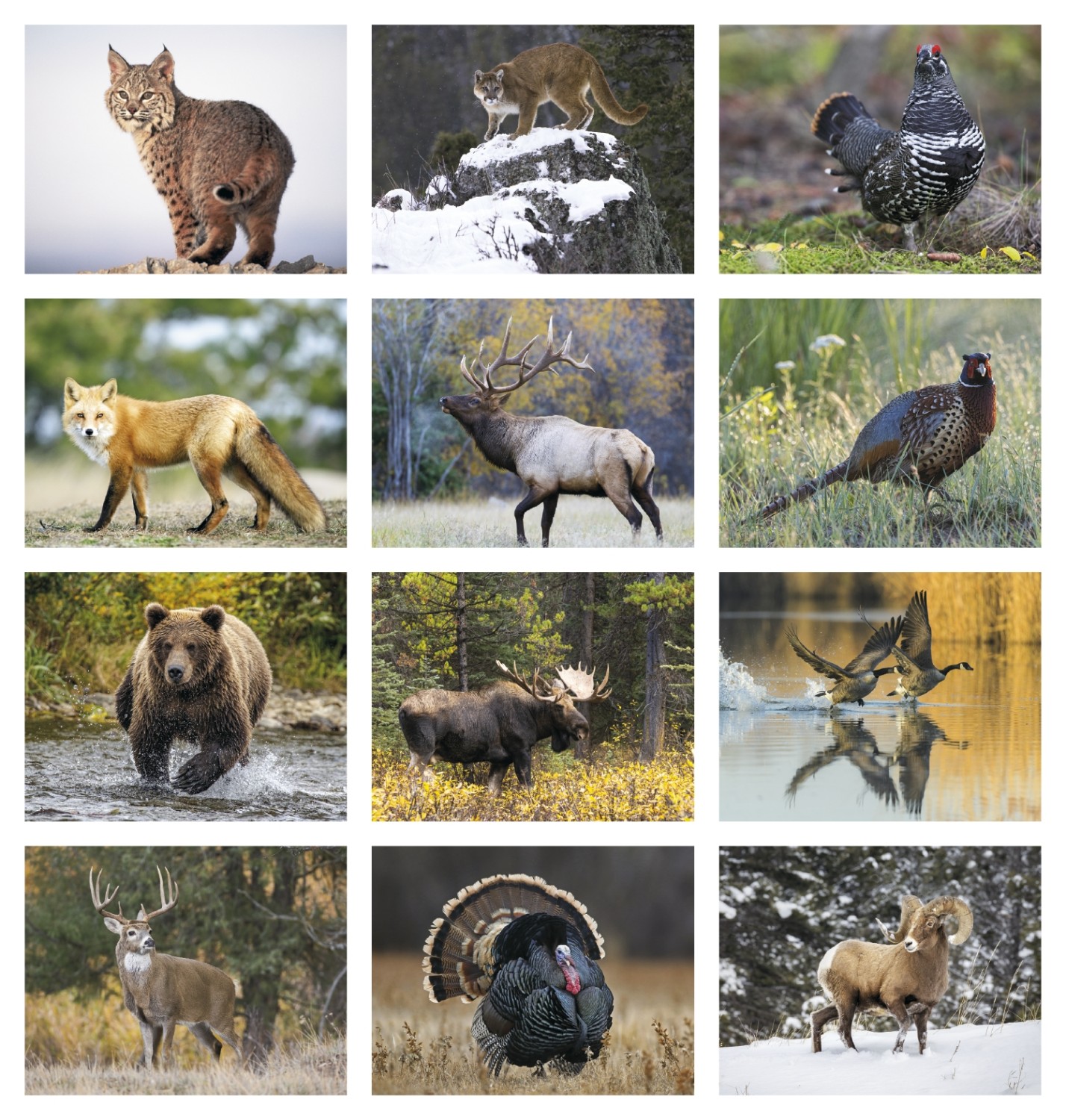 promo calendar with Animals, Bison, Fox, Woolf, Deer, Mountain Goats, Ducks , Moose, Bear,