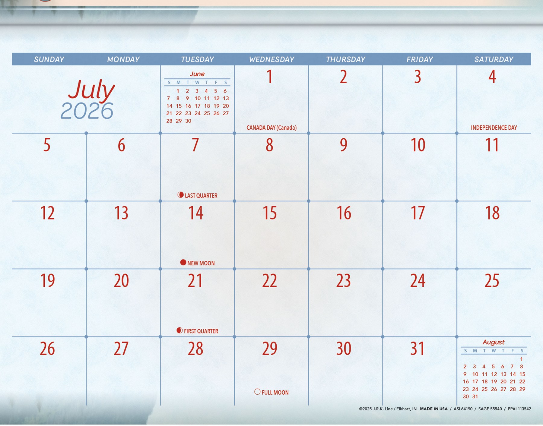 • 12 month calendar.