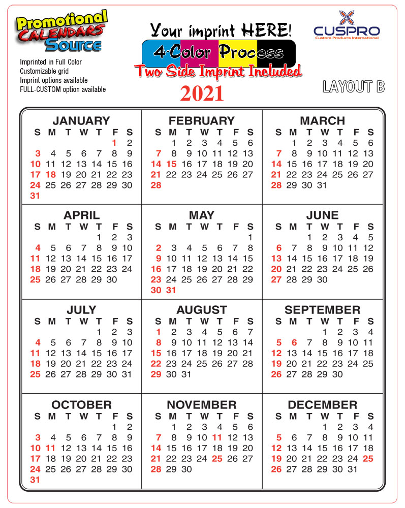 Imprint area available for Full Custom is 8.5" x 11". A custom printed promotional plastic wall calendar for long exposure.