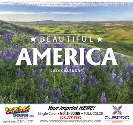 Select one of these fantastic Scenic America Promotional Calendars to be customized with your advertising copy and logo. We will imprint your message so you can gift your customers and recepients with a calendar to be cherished all year long. Promote your business with a cutomized calendar showcasing Landscapes of the United States of America, US landmarks, US States and cities in gorgeous views, National Parks, National Monuments and Treasures. Promote your business with the symbols of America, US Flag, US Pride and made in U.S.A.Custom printed with your logo and information.